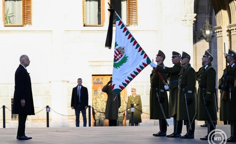Katonai tiszteletadás mellett ünnepélyesen felvonták, majd félárbócra engedték a nemzeti lobogót az aradi vértanúk emléknapján, hétfőn reggel az Országház előtti Kossuth Lajos téren.Az eseményen jelen volt Szalay-Bobrovniczky Kristóf honvédelmi miniszter és Böröndi Gábor, a Honvéd Vezérkar főnöke is.